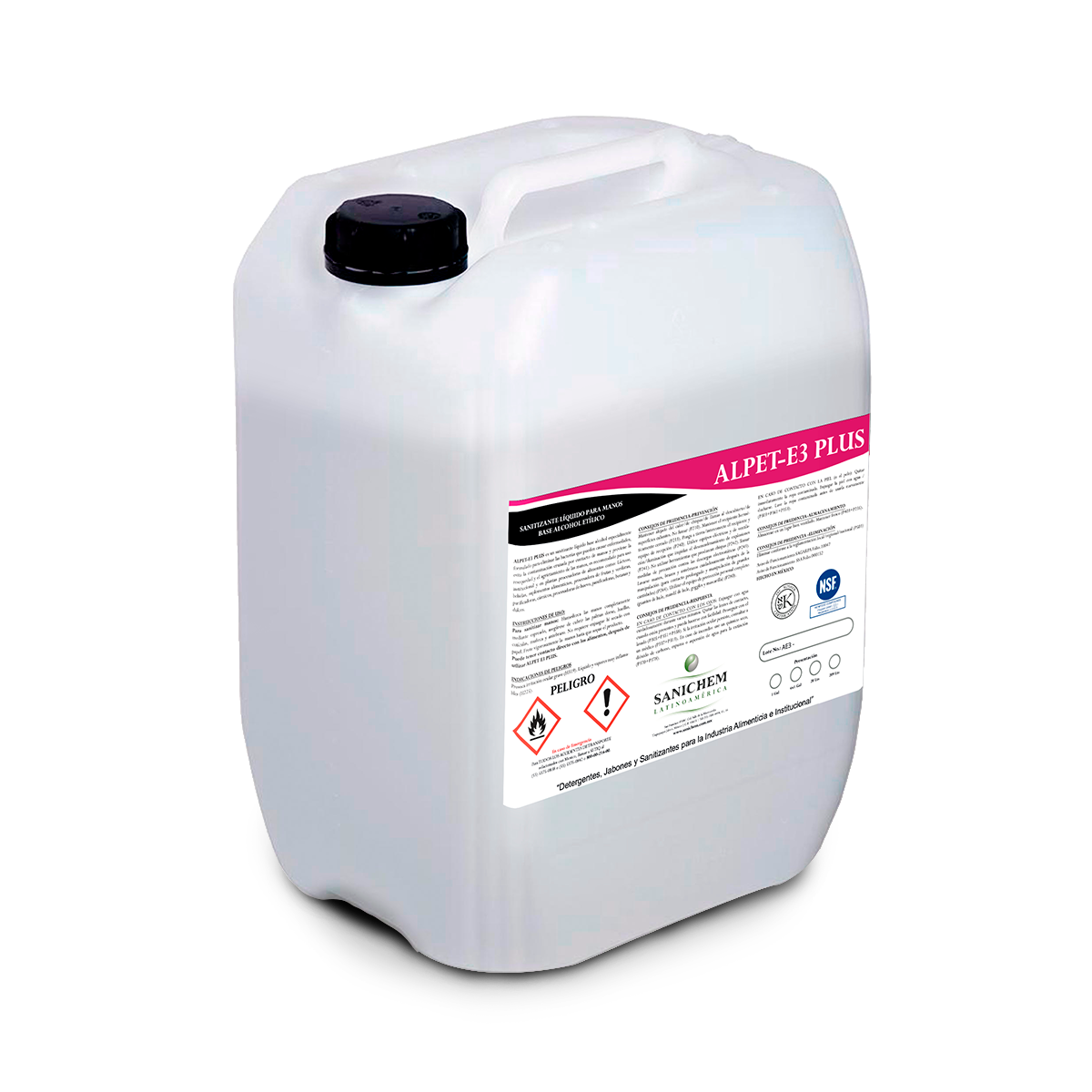 ALPET -E3 PLUS es un desinfectante de manos de efecto rápido, altamente volátil y no requiere de enjuague. Es un enjuague para atomizar sobre las manos el cual elimina tanto bacterias gram-negativa y gram-positiva cuando se utiliza como se indica. Resultados de extensas investigaciones indican que generalmente al lavarse las manos quedan áreas sin recibir jabón o detergente al hacerlo. ALPET - E3 PLUS asegura la desinfección entera de la superficie de las manos, los dedos, las yemas de los dedos, uñas y cutícula, que son áreas potenciales para albergar microorganismos. Es base alcohol etílico el cual mata el 99.999 % de los microbios al contacto.