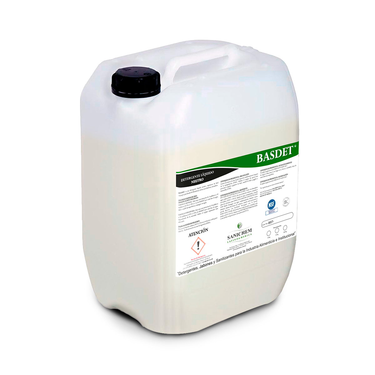 BASDET es un detergente líquido neutro, espumoso, de fácil enjuague para lavado de llenadoras, tolvas, mezcladoras y mesas de trabajo. Es un detergente de uso general para limpieza de equipo, áreas de proceso, equipo de transporte y utensilios. Su formulación a base de surfactantes y emulsificantes ayuda a eliminar suciedades medias y ligeras, de fácil enjuague y no interfiere con las lecturas de luminiscencia con hisopo.