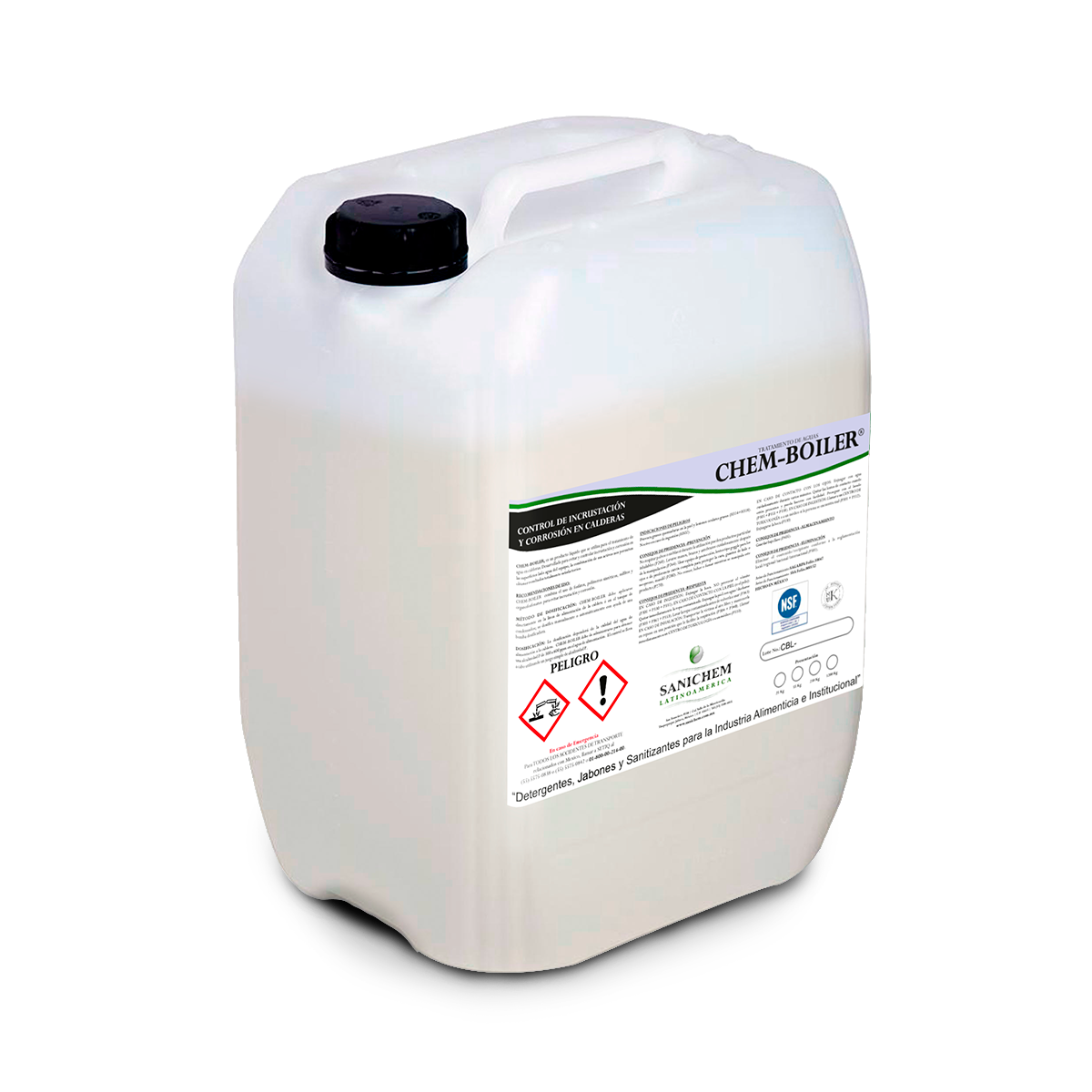 CHEM-BOILER, es un producto líquido que es utilizado para el tratamiento de agua en calderas a baja presión, es utilizado para evitar y controlar incrustación y corrosión en las superficies lado agua del equipo, la combinación de sus activos nos permiten obtener resultados totalmente satisfactorios.