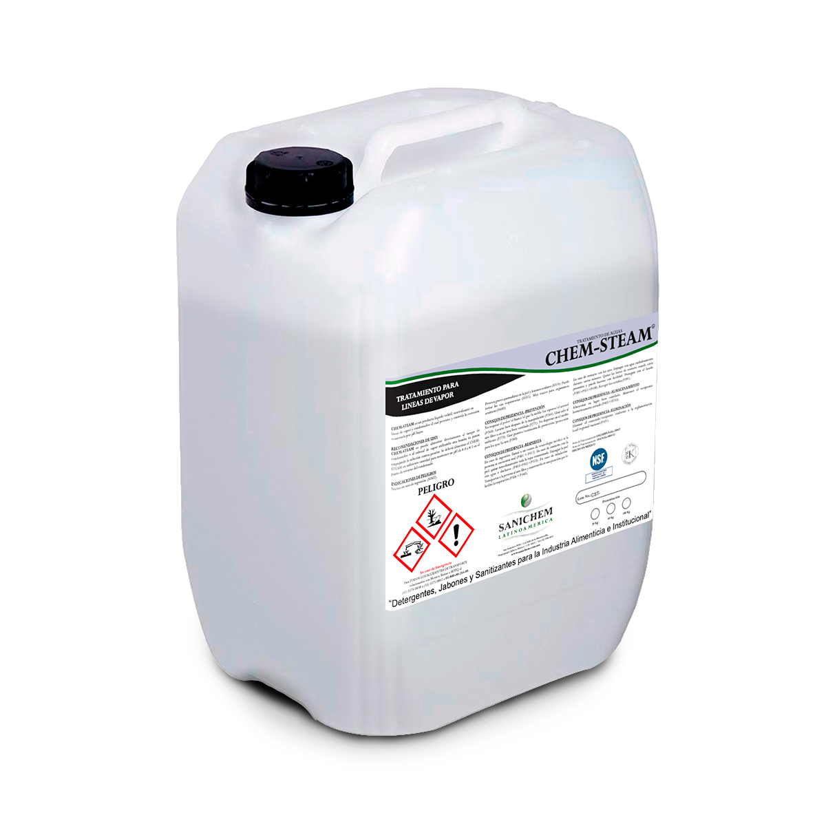 CHEM STEAM, es un producto líquido volátil, neutralizante en líneas de vapor y condensados previene y controla la corrosión ocasionada por pH bajos .