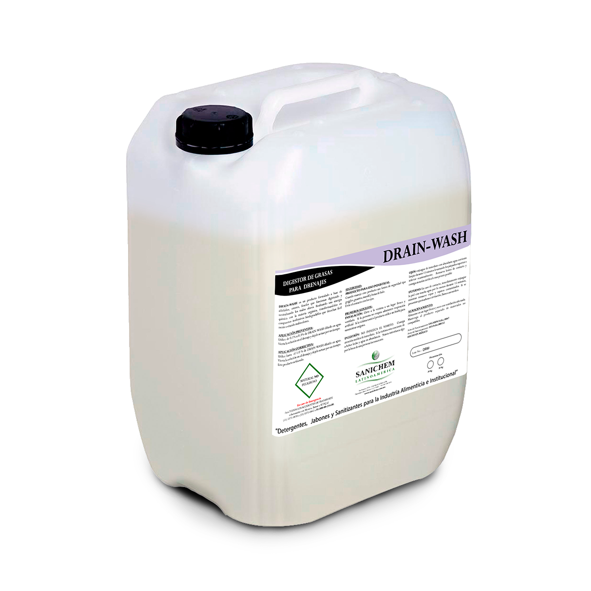 DRAIN-WASH es un producto formulado a base de aldehídos, esteres, fenoles, que funcionan digiriendo y neutralizando los malos olores. Realizando una sinergia química con la materia orgánica transformándolos en compuestos inofensivos biodegradables que se desechan fácilmente evitando malos olores.