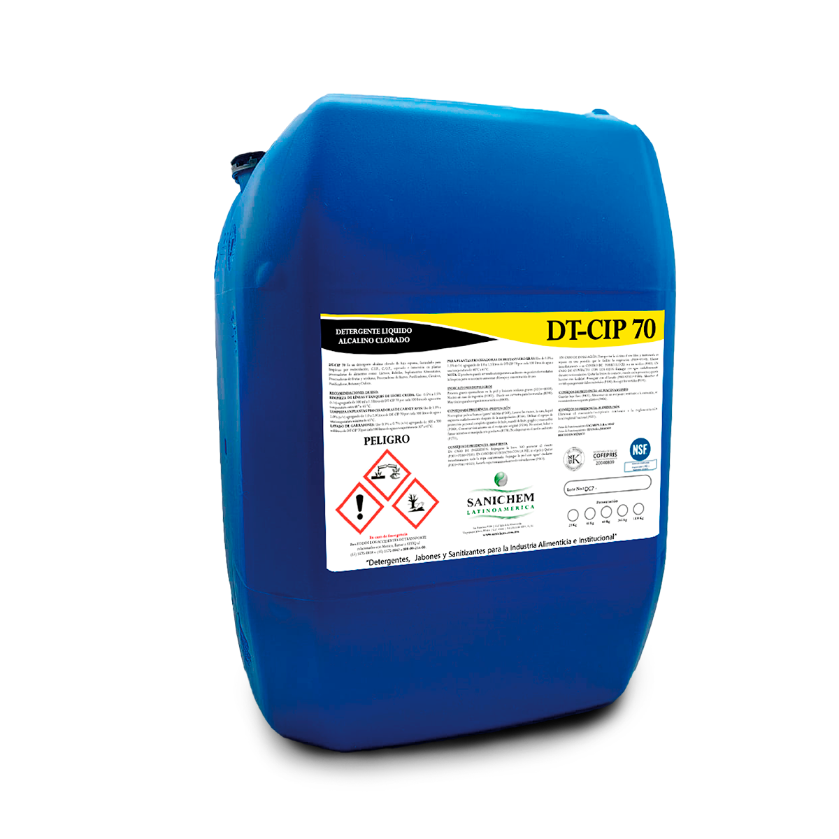 DT-CIP 70 es un detergente alcalino, clorado, líquido, formulado para limpieza por C.I.P , C.O.P , recirculaciòn y espreado para uso pesado en plantas procesadoras alimentos como: Procesadoras de Lácteos, Bebidas, Suplementos Alimenticios, Procesadoras de frutas y vegetales, Cárnicos, Purificadoras, Botanas y Dulces.