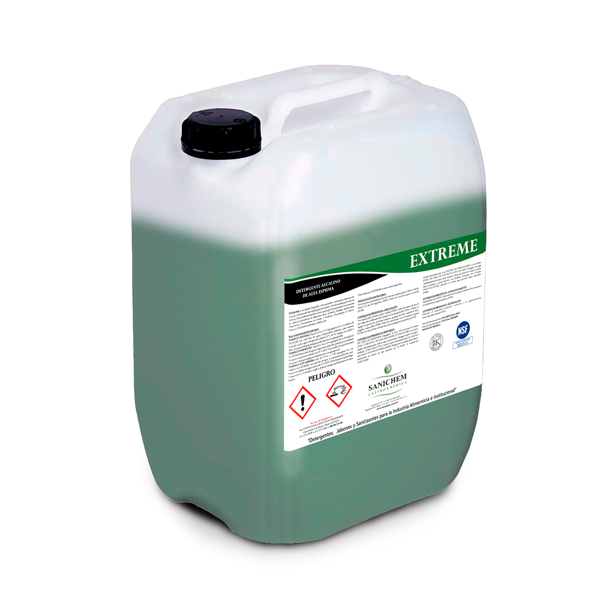EXTREME, es un líquido limpiador y desengrasante alcalino concentrado multi usos de alta espuma. Está formulado para remover todo tipo de suciedad incluyendo aceite y grasa que frecuentemente se encuentra en plantas procesadoras de alimentos.