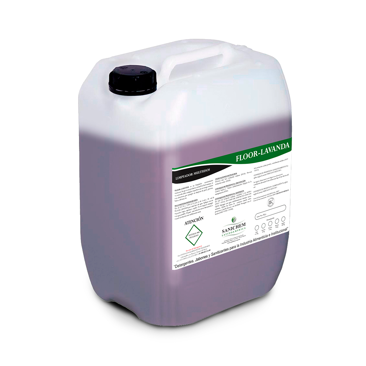 FLOOR-LAVANDA es un limpiador aromatizante multiusos.Ya que es un producto versátil de fácil manejo, se recomienda sobre cualquier superficie que no tenga contacto con alimentos, por ejemplo en limpieza de pisos, puertas, baños, oficinas, etc.