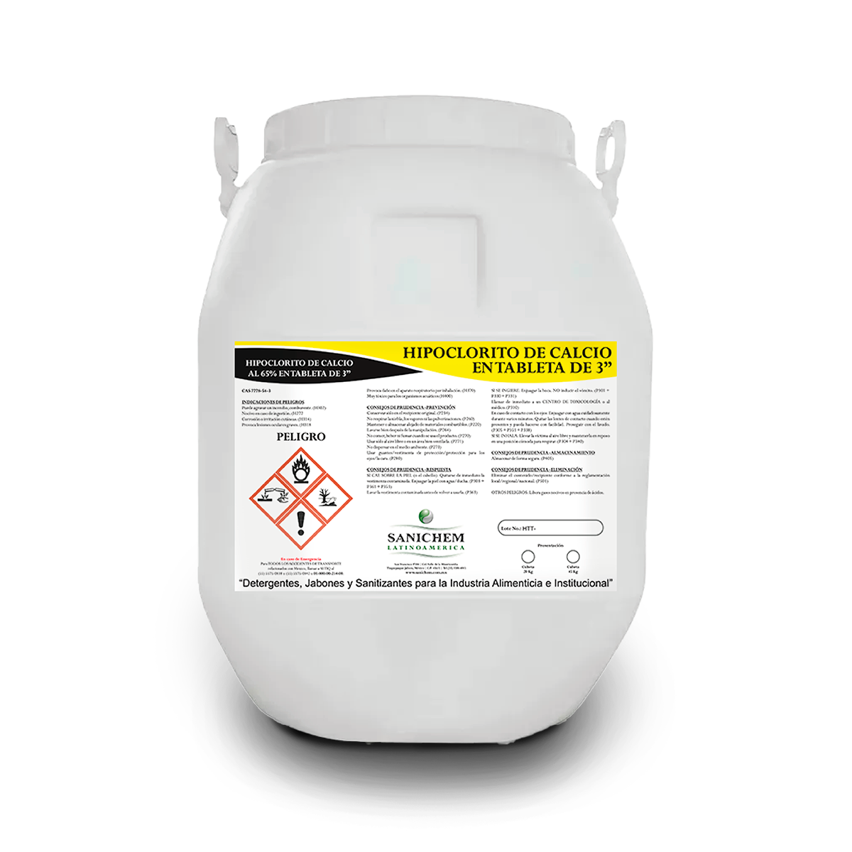 Las tabletas de HIPOCLORITO DE CALCIO son una fuente fácil de cloro disponible especialmente formuladas para aplicaciones donde se requiere el poder desinfectante y oxidante del cloro. Usualmente utilizadas en blanqueadores líquidos, como sanitizante en general, para el tratamiento y potabilización de aguas. También controla olores y destruye moho.