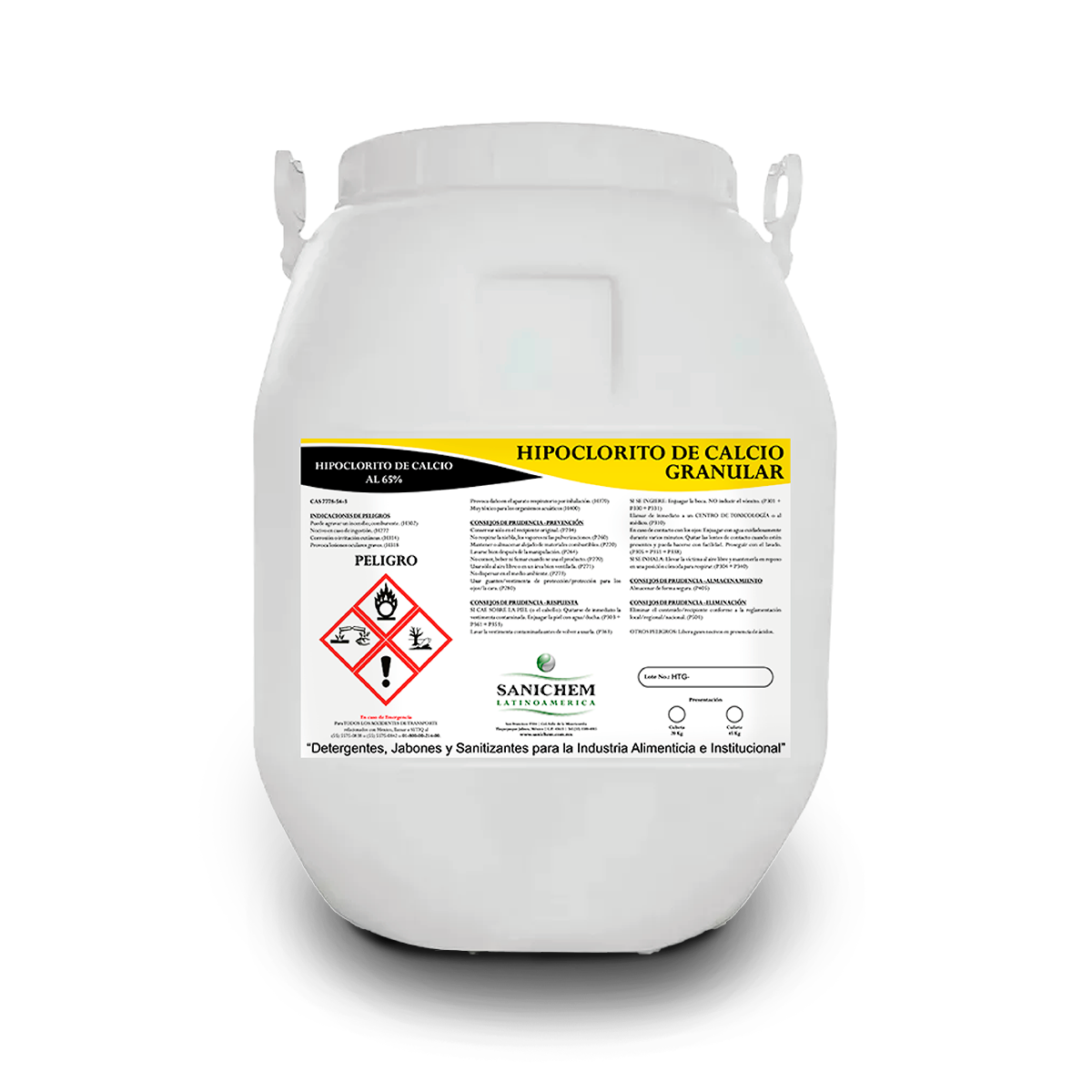 El HIPOCLORITO DE CALCIO es una fuente fácil de cloro disponible especialmente formulada para aplicaciones donde se requiere el poder desinfectante y oxidante del cloro. Usualmente utilizado en blanqueadores líquidos, como sanitizante en general, para el tratamiento y potabilización de aguas. También controla olores y destruye moho.