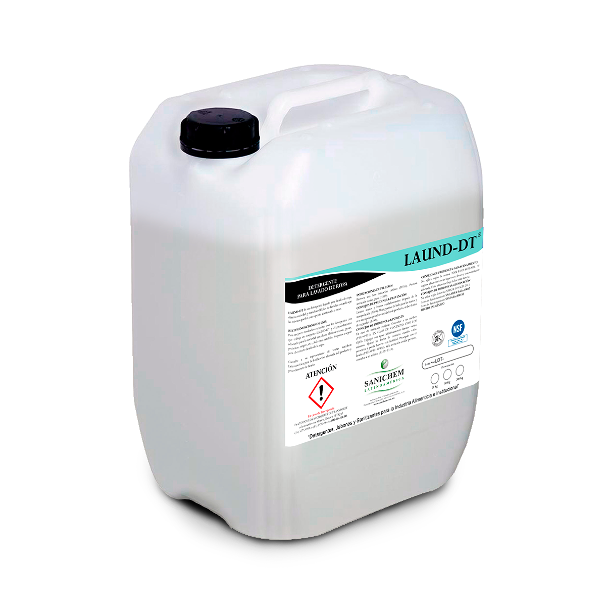 LAUND-DT es un detergente liquido para lavado de ropa, elimina suciedad y manchas difíciles de las telas evitando que las mismas queden con aspecto acartonado o tieso.