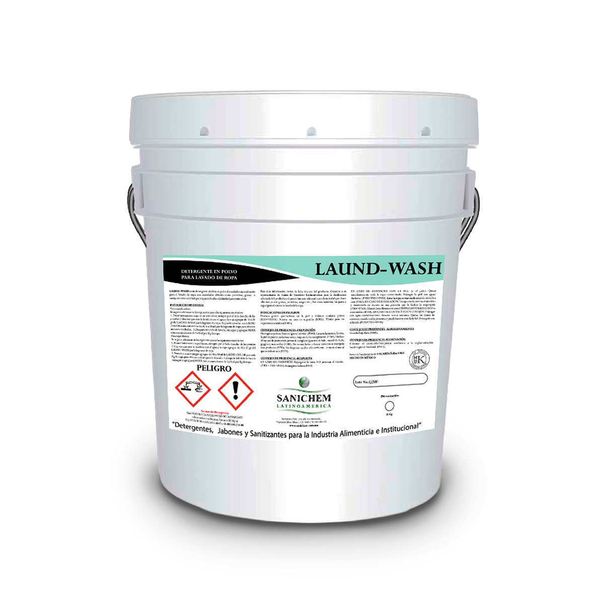 LAUND-WASH es un detergente alcalino en polvo, formulado especialmente para el lavado de ropa con suciedades difíciles