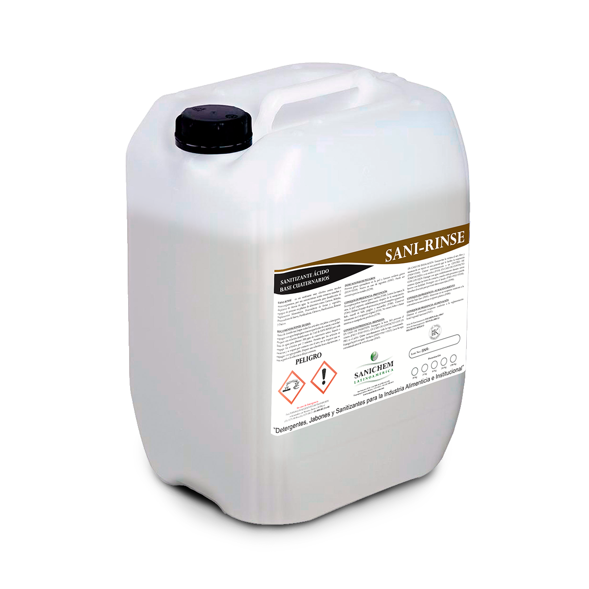 El SANI-RINSE es un sanitizante ácido a base de amonio de cuaternario.